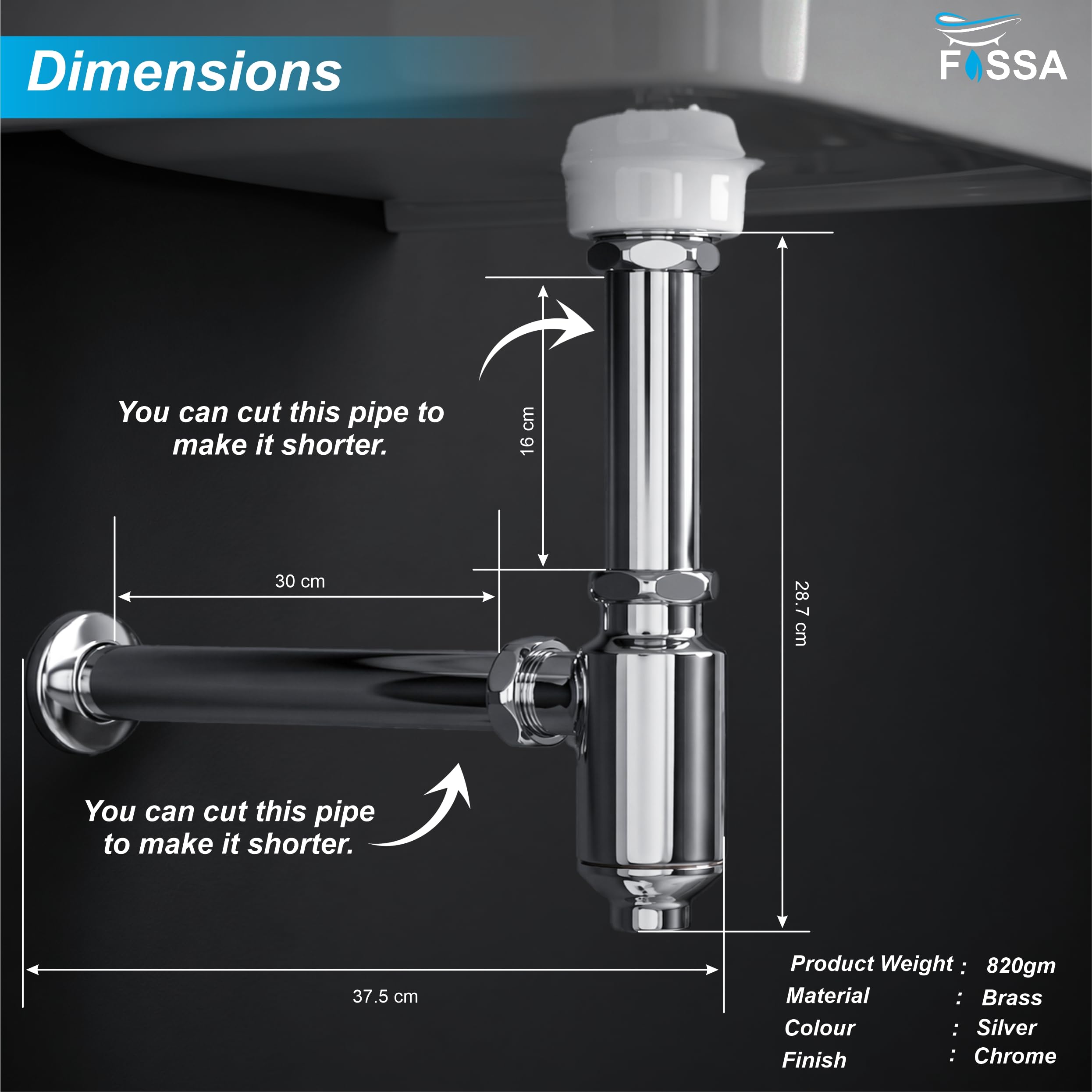12 inch Crystall Brass Silver Bottle Trap with Flange