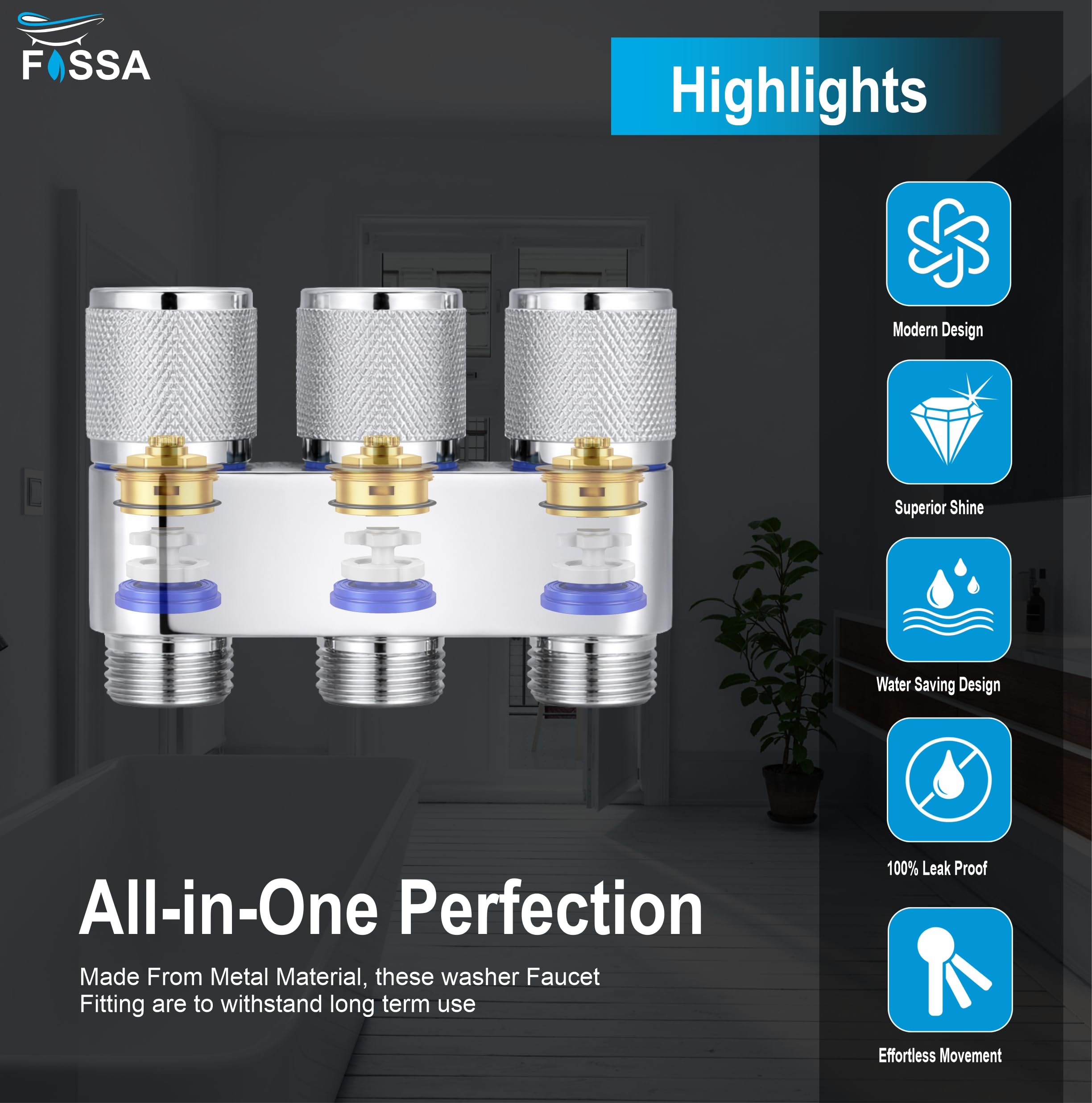3 Way Laundry Faucet Silver Stainless Steel Angle Valve
