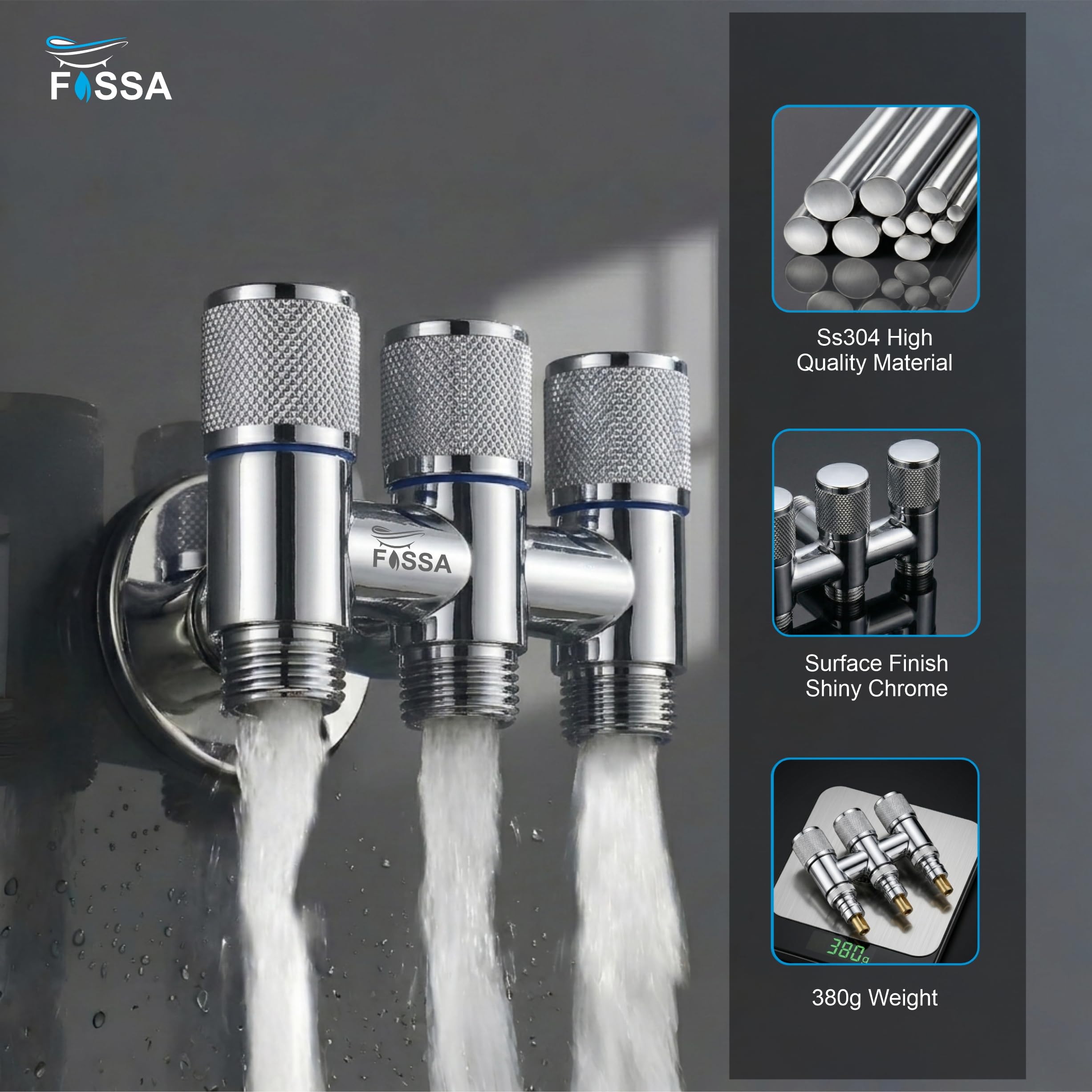3 Way Curio Laundry Faucet Stainless Steel Angle Valve Chrome Finish