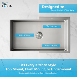 Made in India: Upgrade your kitchen with the Fossa Aqua 21"x18"x09" Handmade Single Bowl Sink, made from AISI 304 stainless steel with a strong 2.2mm collar thickness for lasting durability. The deep 9-inch bowl and matte silver finish ensure rust resistance and smooth daily use. Includes: Colander, Coupling & Waste Pipe Set. Warranty: 10-Year on Sink & Colander | 1-Year on Other Accessories.