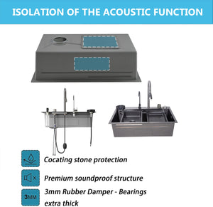 अद्भुत बेंचटॉप सिंक]: बिल्ट-इन डबल-दीवार वाला फ्रेम स्लाइड-इन एक्सेसरीज़ के लिए बहुत उपयुक्त है, जो आपको एक ही समय में विभिन्न कार्य करने की अनुमति देता है - जिसमें भोजन काटना, छोटी मात्रा में बर्तन साफ करना, भोजन खाली करना और भोजन को ठंडा करना शामिल है। अलगाव का पानी. आहार की तैयारी से लेकर सफ़ाई तक सब कुछ सरल बनाएं, जिससे मूल्यवान स्थान की बचत होगी। [अद्वितीय झरना नल डिजाइन]: झरना नल सिंक को बहुत सुंदर बनाता है, और एक बड़ा बहता पानी क्षेत्र भोजन और टेबलवेयर की सफाई करते समय इसे सरल और प्रभावी बनाता है। यह आपको बेहद सुखद अनुभव प्रदान करेगा। [तीन-फ़ंक्शन स्प्रिंकलर नल]: पुल-डाउन स्प्रिंकलर में तीन बहुक्रियाशील स्प्रे मोड हैं, जो लंबी दूरी तक छिड़काव कर सकते हैं, और हाई-आर्क 360-डिग्री घूमने वाला स्प्रिंकलर अतिरिक्त लचीलेपन के साथ व्यापक सफाई प्रदान कर सकता है। प्रत्येक उपयोग के बाद, स्प्रे हेड को हमेशा स्प्रे मुंह से हटा दिया जाता है। [सिंगल रोटेशन नॉब] - नॉब को (बाएं-दाएं पुल-डाउन नल/झरना नल) घुमाकर, आप आसानी से पानी के तापमान और पानी की मात्रा को नियंत्रित कर सकते हैं और पानी के प्रवाह के प्रकार को बदल सकते हैं। [टिकाऊ सामग्री]: यह सिंक उत्कृष्ट मजबूती और स्थायित्व, जंग और दांत प्रतिरोध के साथ उच्च गुणवत्ता वाले स्टेनलेस स्टील से बना है। नैनो मैट लेपित सतह पर पानी का कोई दाग नहीं होगा, आसान रखरखाव के लिए इसे साफ किया जाएगा। [आकार और स्थापना]: 29 - 1/2"एल x 18 - 1/8"डब्ल्यू x 8 - 1/2"एच (8"डी)। किचन सिंक बिल्ट-इन या बैक-माउंटेड इंस्टॉलेशन हो सकता है। [सामग्री] : (1) अंतर्निर्मित नल; (1) यूक्रेनी लकड़ी का कटिंग बोर्ड; (1) स्टेनलेस स्टील कोलंडर; (1) स्टेनलेस स्टील मिनी सिंक; (1) ढक्कन के साथ बड़े वर्गाकार नाली घटक; (1) ड्रेन किट।