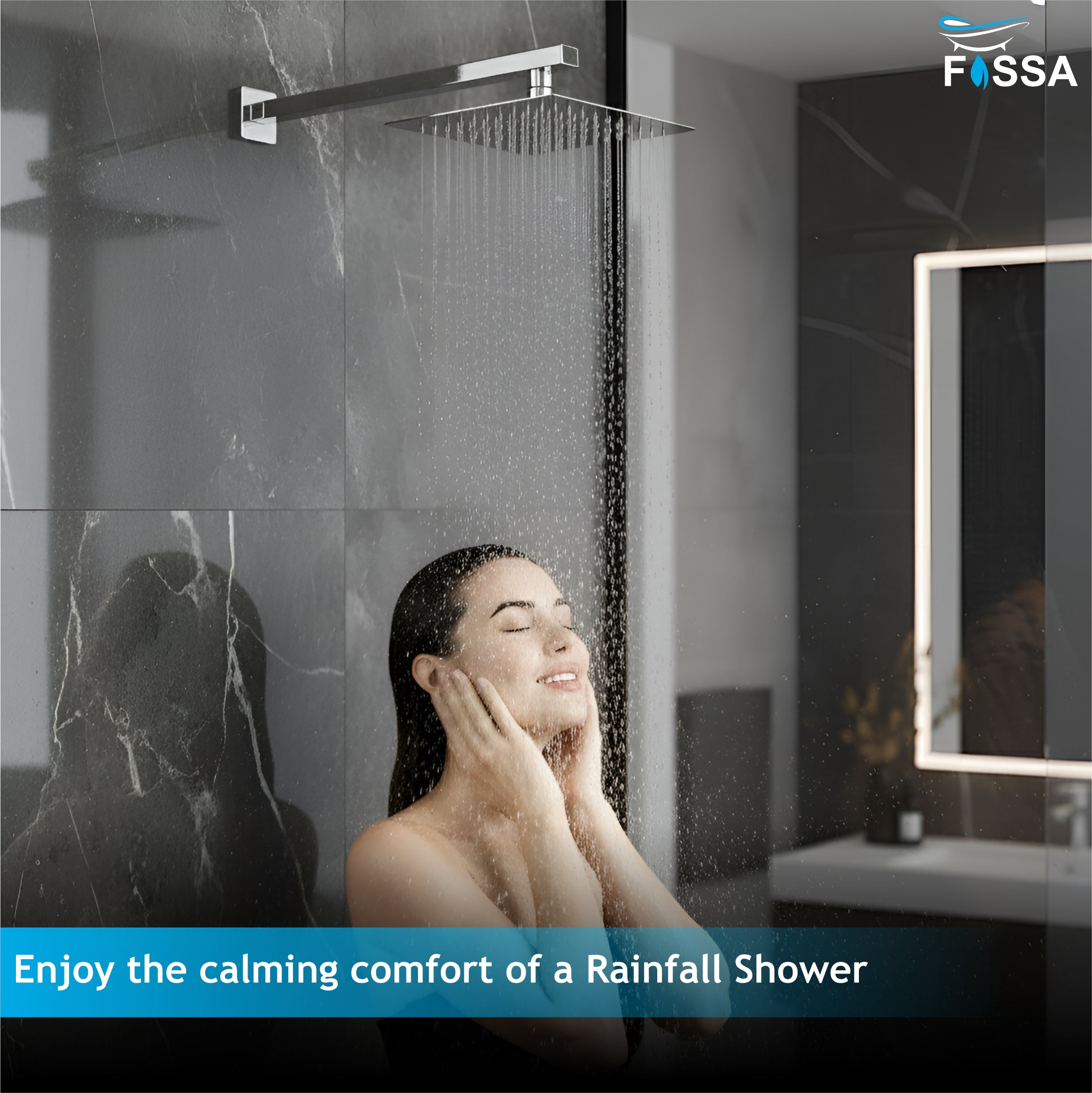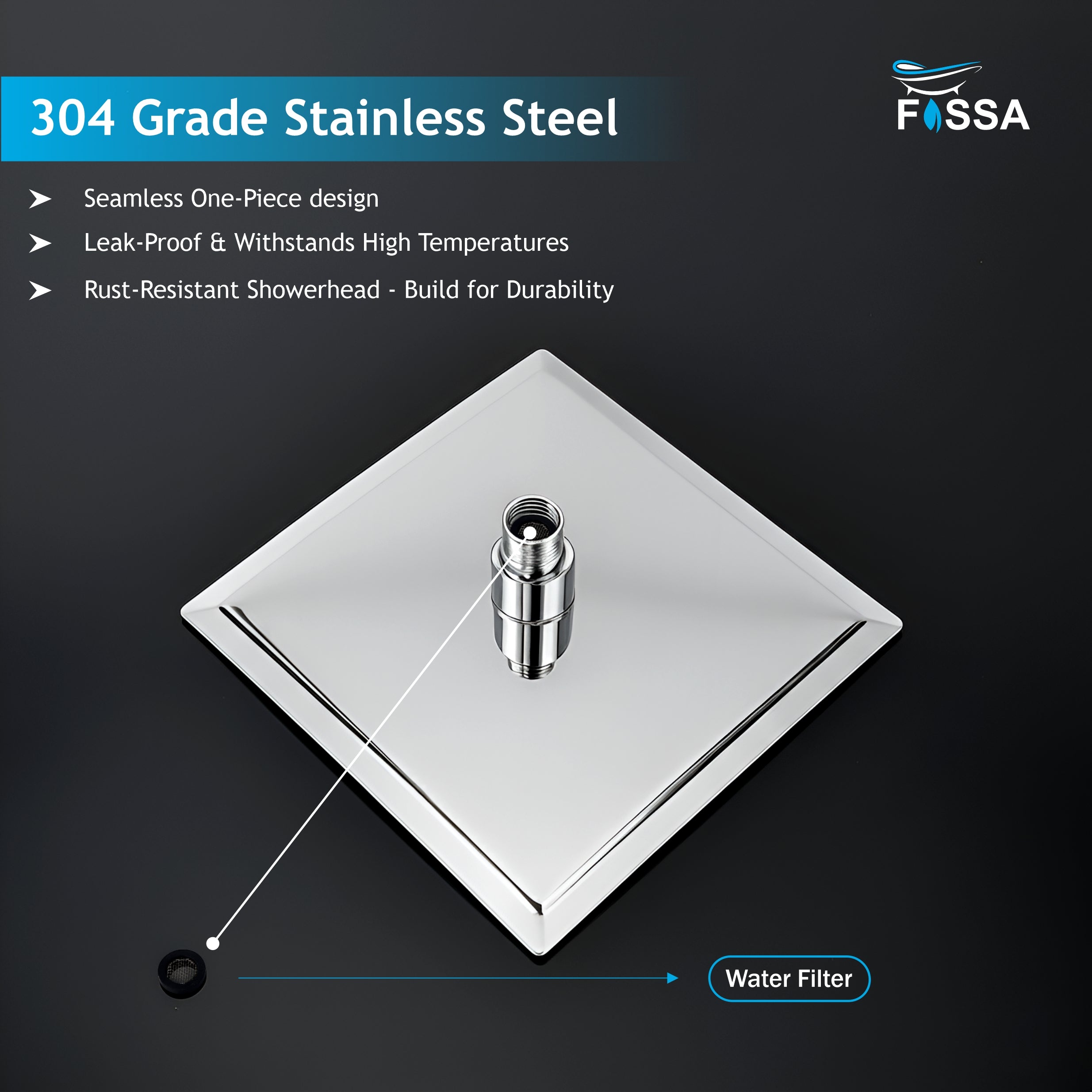 फोसा 6x6 रेन ओवरहेड शावर स्क्वायर 304 स्टेनलेस स्टील रेन शावर ओवरहेड वॉल माउंटेड, बिना आर्म के UOHS-002