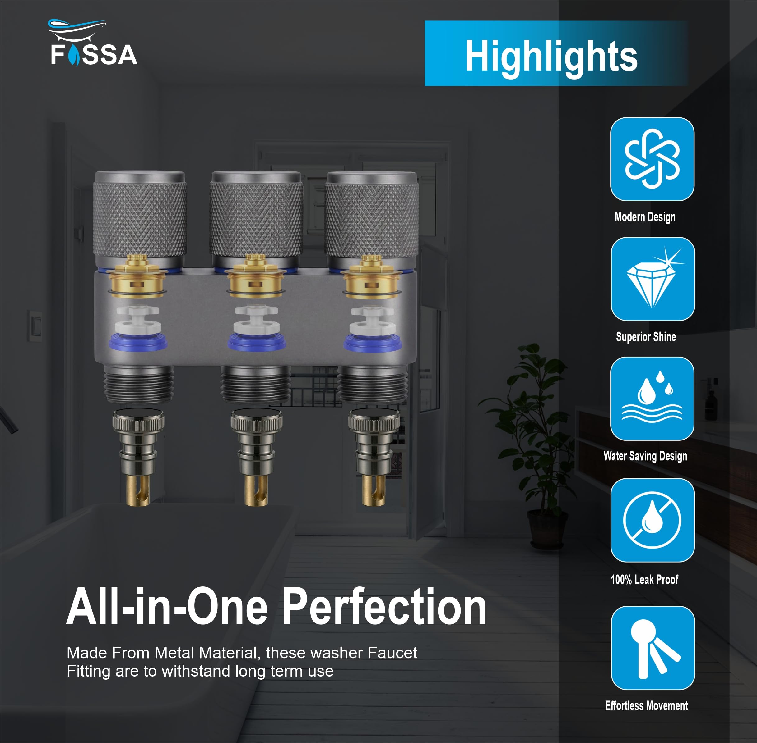 Galaxy 3 Way Grey Stainless Steel Laundry Angle Valve With Nozzle