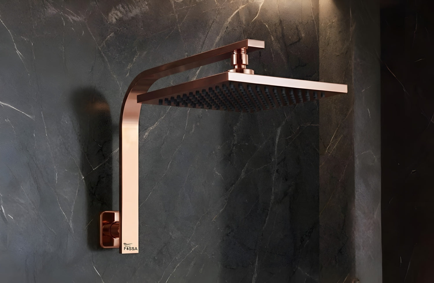 Rainfall (8x8 Inches) Stainless Steel Rose Gold Finish Overhead Shower With Arm (18 Inch)