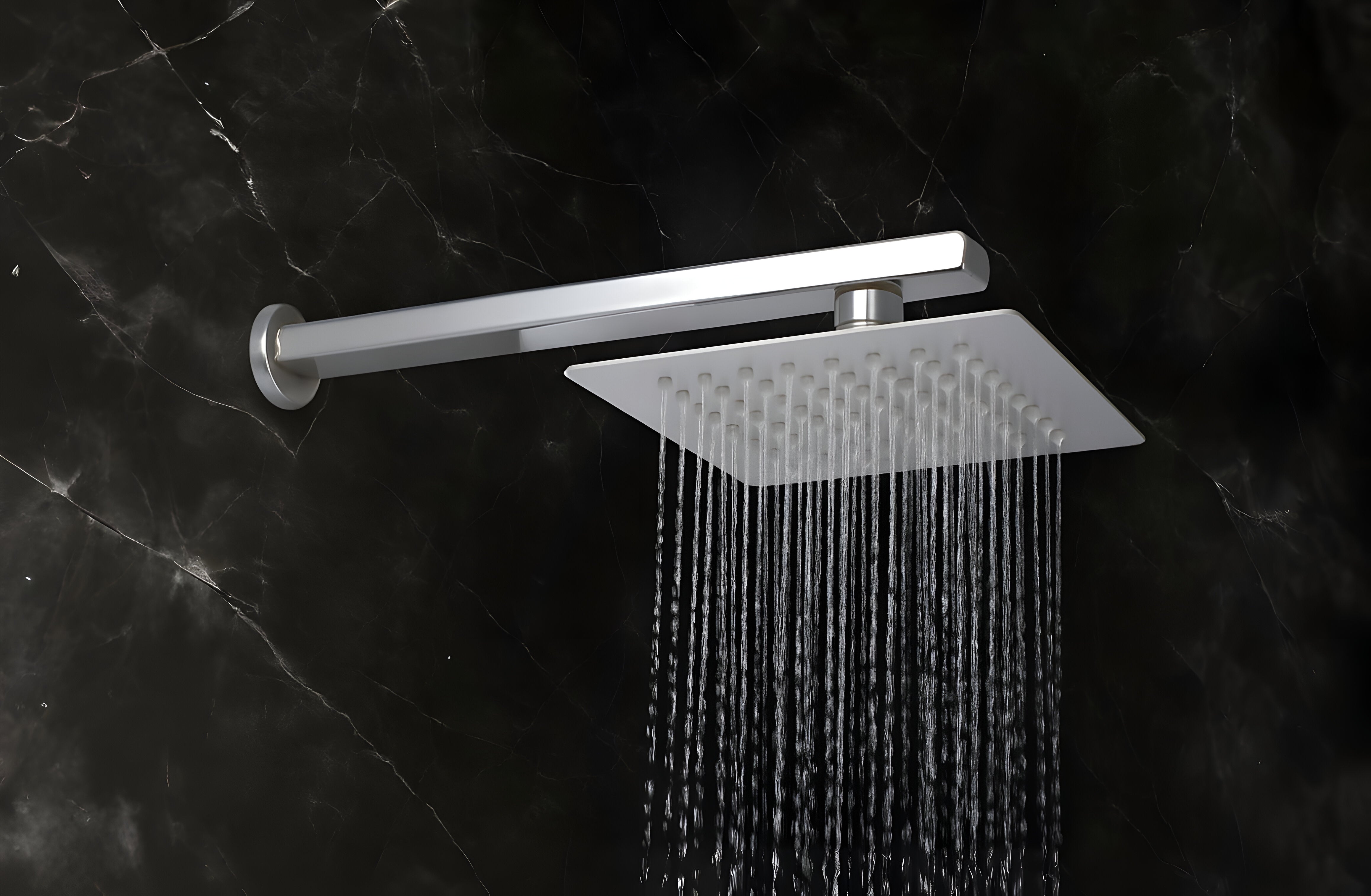 Luxurious overhead shower with wide coverage and rainfall effect for a spa-like, refreshing bathing experience at home.