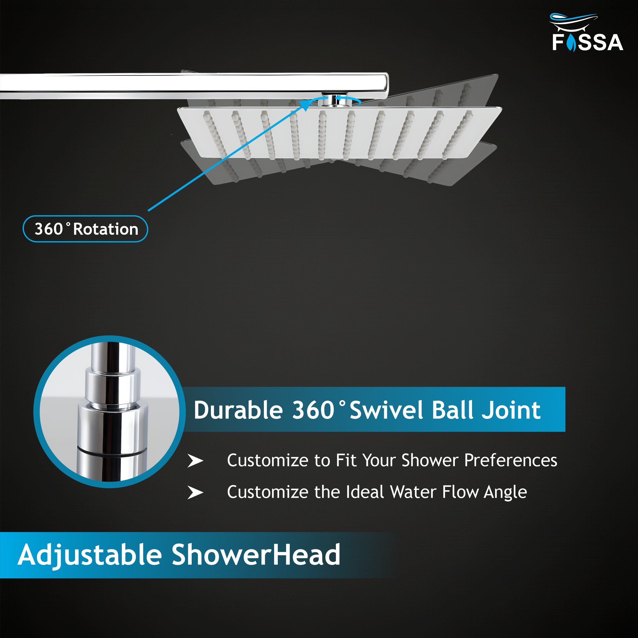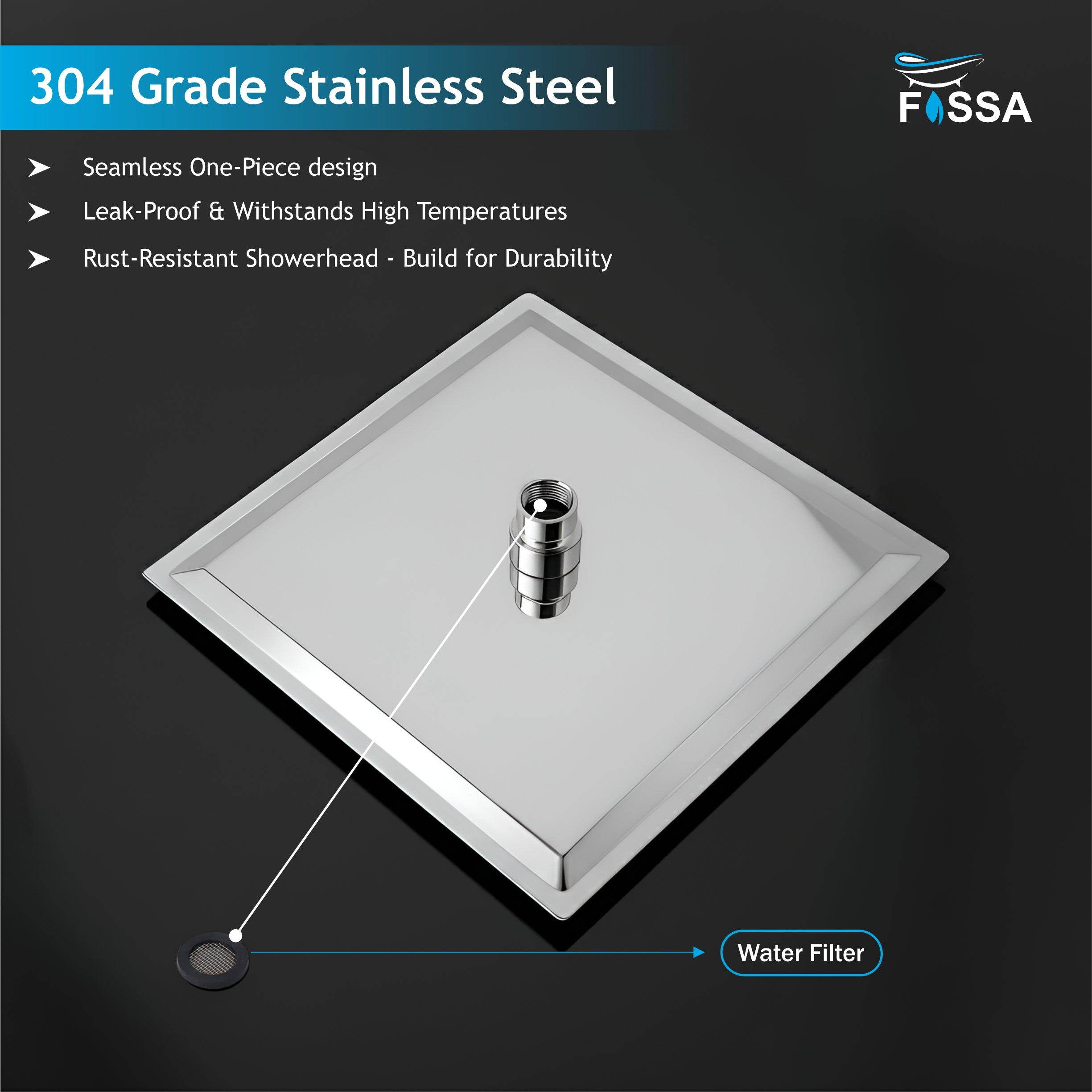 Home Fossa 8x8 Rain Overhead Shower Square 304 Stainless Steel Rain Showers Overhead Wall Mounted, Without Arm UOHS-003
